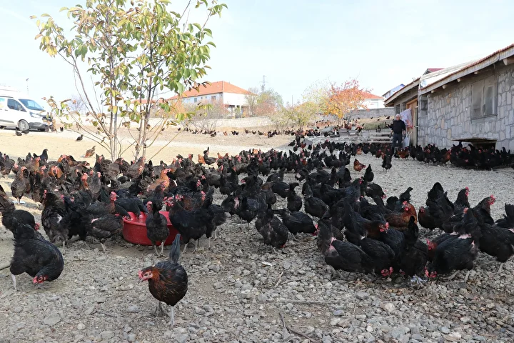 Ünal, tavukların günlük yaklaşık 500 kilo yem tükettiğini belirterek, hava koşullarına göre dışarı çıkma saatlerini ayarladıklarını, hava karardığında ise tavukların kümese döndüğünü anlattı.